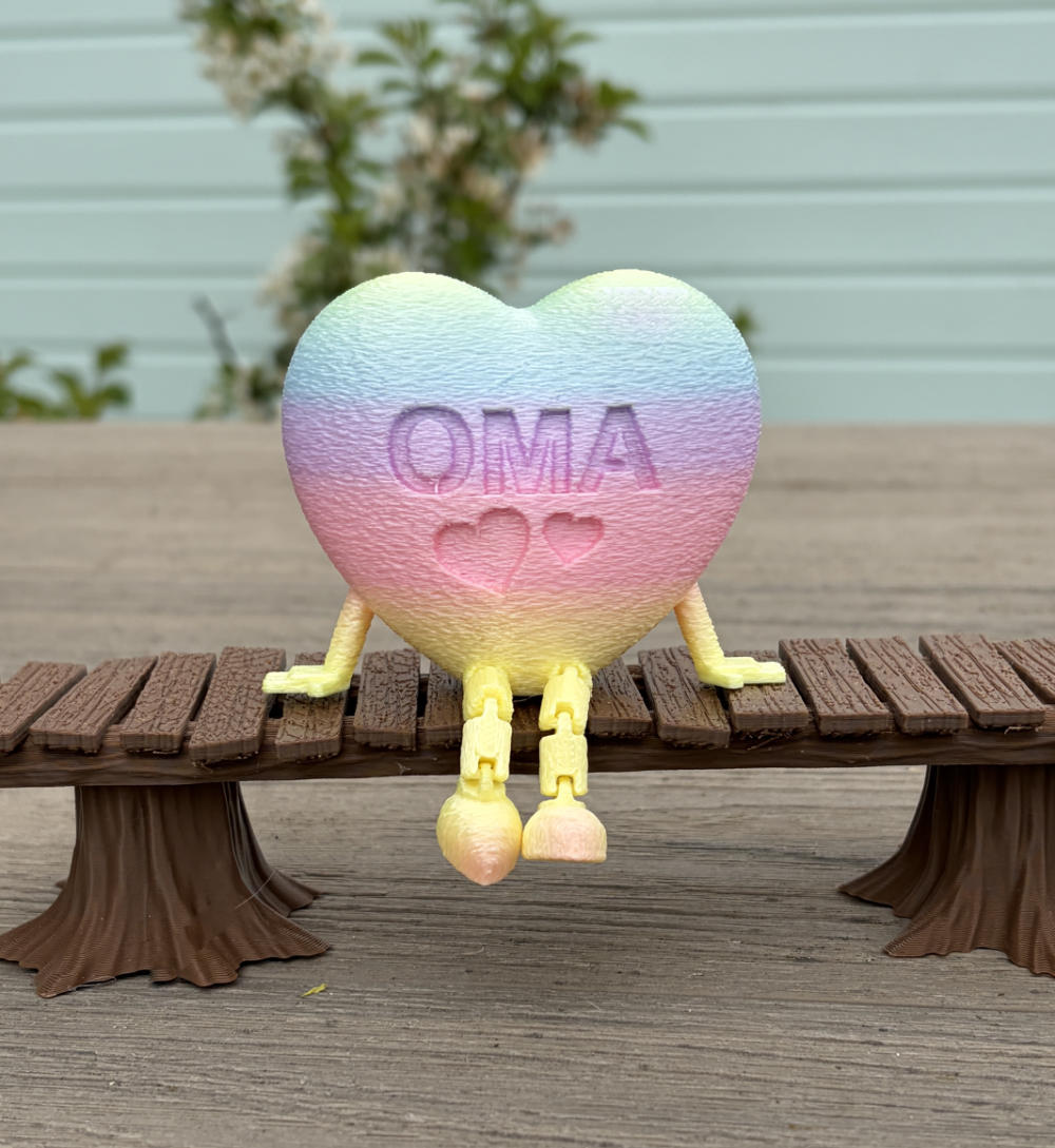 Die zarten Farben und die beweglichen Beine verleihen der Figur einen charmanten, fast lebendigen Charakter. Ob auf dem Regal, dem Nachttisch oder im Wohnzimmer – dieses Herz bringt Wärme, Wertschätzung und ein Lächeln in jeden Raum.